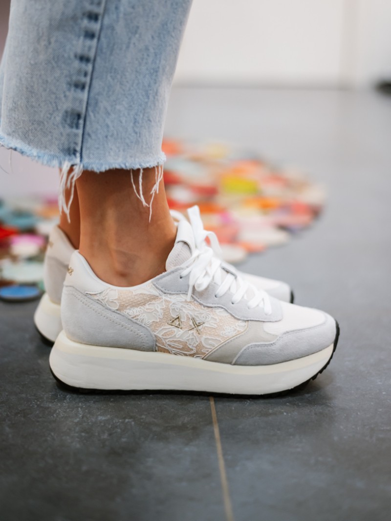 SUN68 BIG ALLY FLOWER MESH BIANCO PANNA