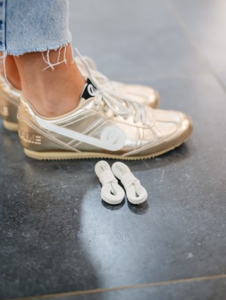 Baskets à fines semelles vendues avec deux lacets différents.